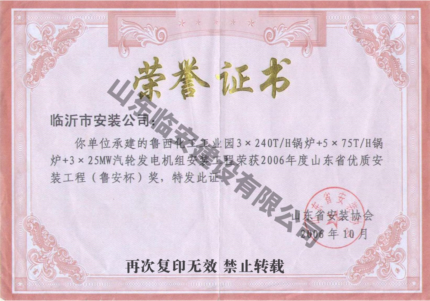 山東臨安建設有限公司(原名臨沂市安裝公司)始建于一九六六年,是由老國企改制的股份制企業(yè),公司總部位于羅莊區(qū)通達路211號,現(xiàn)有職工1000余名,各類工程經(jīng)濟技術人員816名,其中高中級職稱64名,初級職稱204人。主要從事機電工程施工總承包,電力施工總承包,石油化工施工總承包,建筑裝飾裝修施工總承包,鍋爐安裝、改造I級(參數(shù)不限),GB1、GB2(2)級、GC1級、GD1級壓力管道安裝,起重機械B級安裝,電力設施承裝、承試,并取得了GB/T19001-2008質量管理體系認證證書、GB/T28001-2011職業(yè)健康安全管理體系認證證書、GB/T24001-2004環(huán)境管理體系認證證書,資信等級“AAA”級。